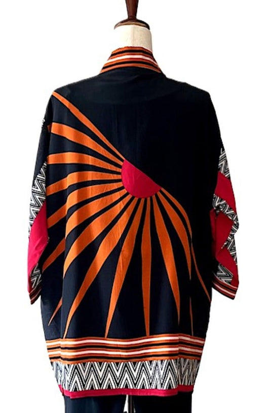 Short Silk Kimono Duster. Dramatic In Red And Black. (Stripe)