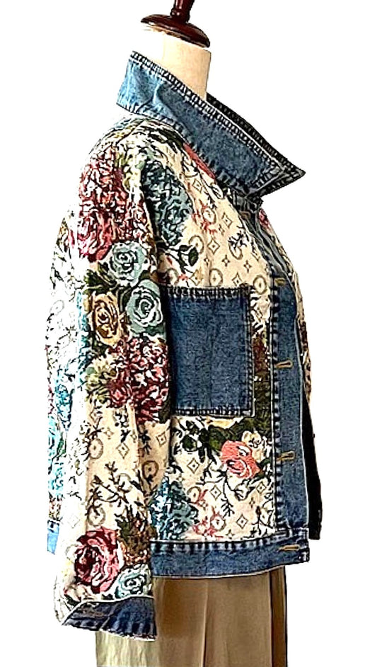 Jacket: Vintage Style Floral Pattern Boho Denim Jean