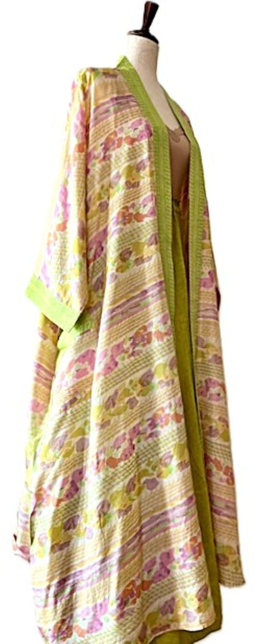 Luxurious Rich Silk Long Kimono Duster. Glamorous (Pastel)