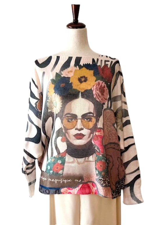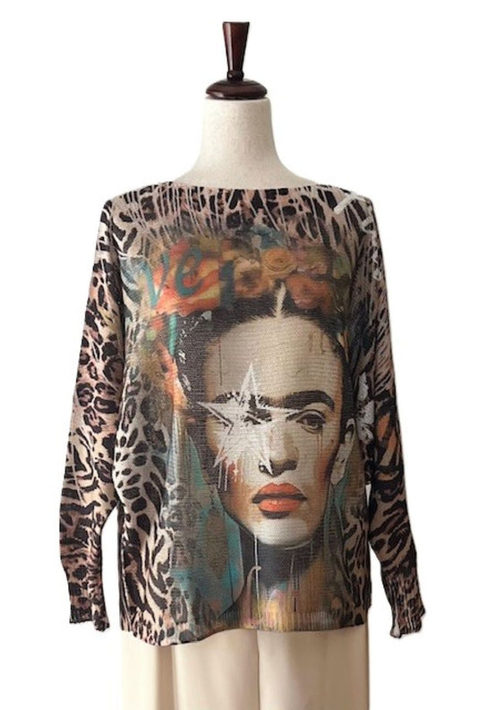 Italian Knit Sweater, Great Color and Light Weight (Frida Leopard)