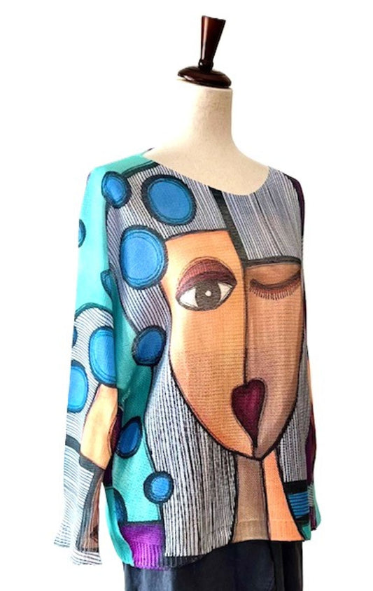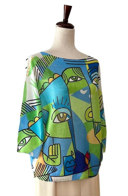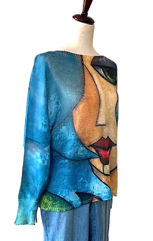 Italian Knit Sweater, Picasso. Bold Colors. (Blue)
