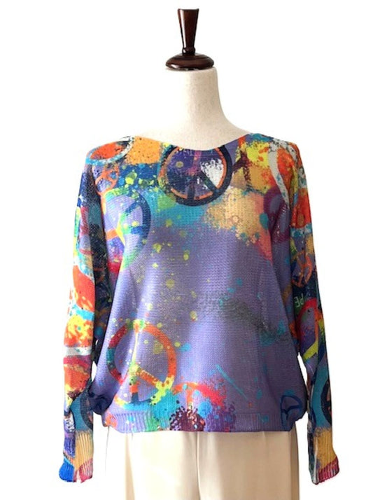 Italian Knit Sweater, Green Picasso. Great Color and Light Weight.