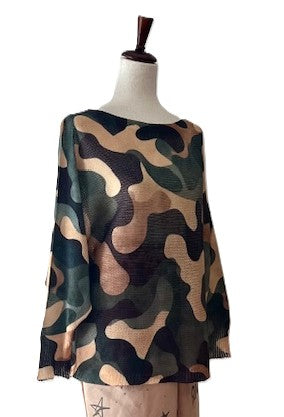Italian Knit Sweater, Great Color and Light Weight (Olive Camoflauge)