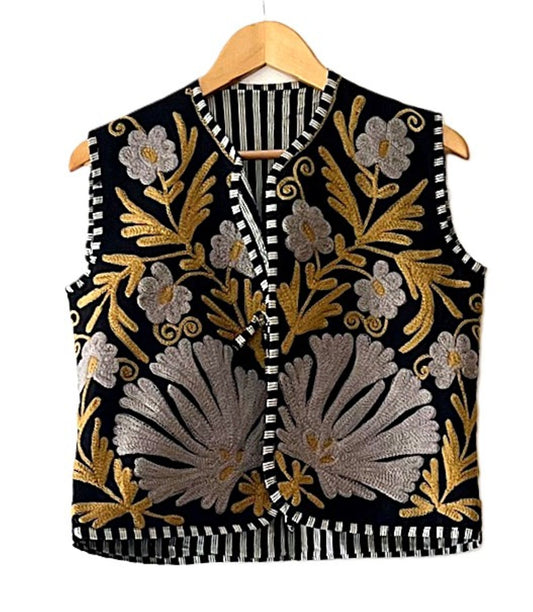 Fully Reversible Designer Handmade Embroidered Vest. Stunning. (Black Gold)