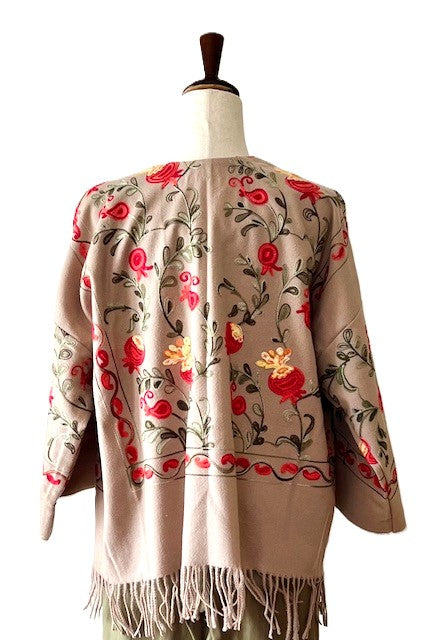 Jacket, Luxury At It's Finest. Cashmere Suzani Embroidered Jacket With Fringe Artisan (Camel)