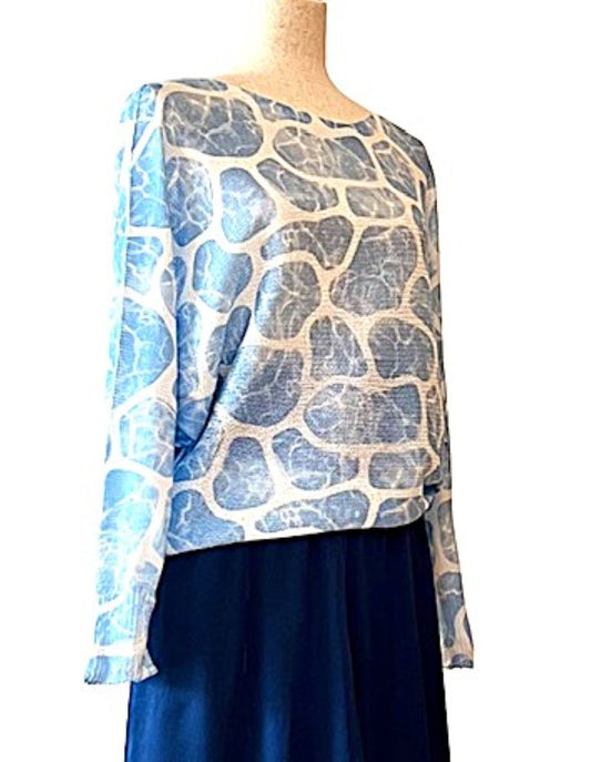 Italian Knit Sweater, Soft Abstract Print In Aqua