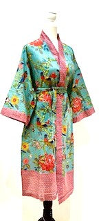 Bright Garden Block Print Cotton Kimono Robe Is Fresh and Colorful.