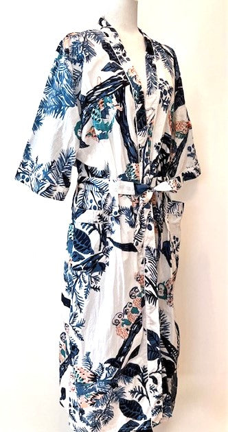 Short Kimono Cotton Robe Makes A Great Coverup. Tropical Bird of Paradise Print.