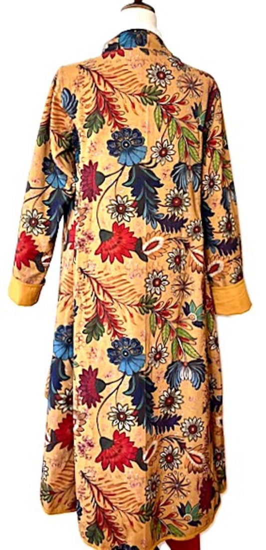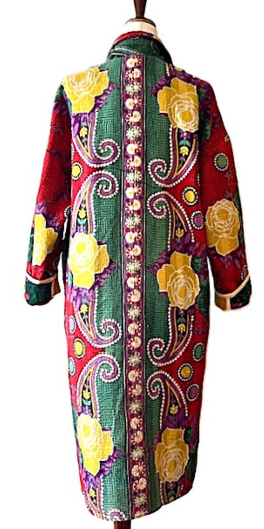 Jacket - Wearable Art, Long Boho Quilted Patchwork Coat Is A Statement Piece (Red Floral)