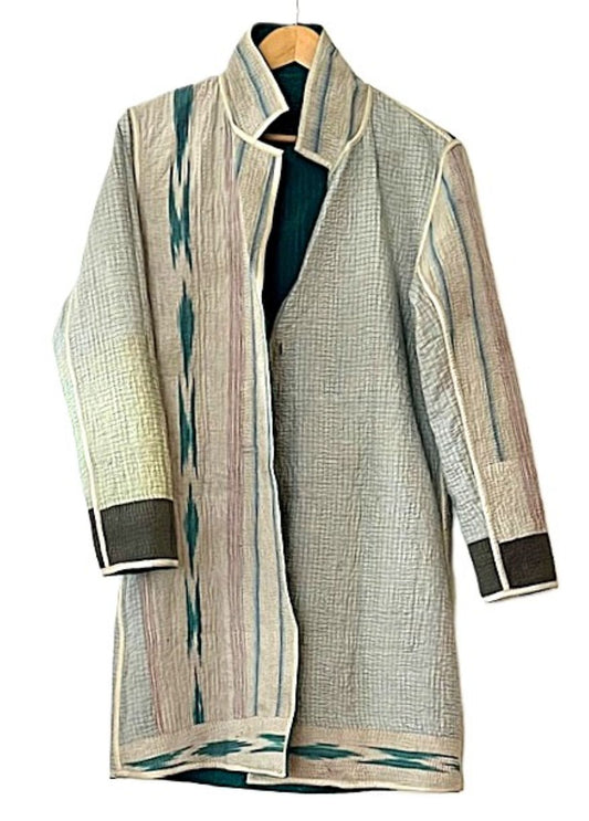 Specialty Collection: Unique Bohemian Outerwear Patchwork Coat Fully Reversible. (Teal)