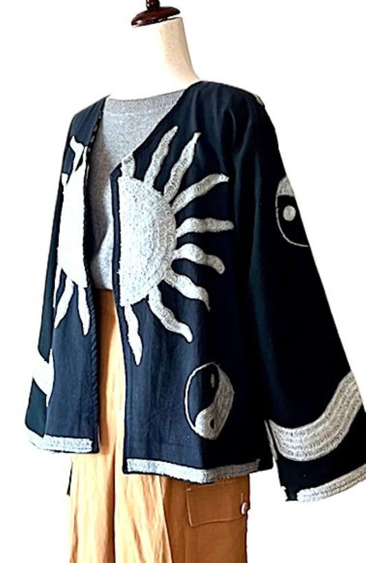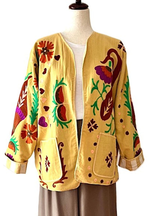 Jacket, Wearable Art In This Boho Suzani Cotton Kimono "Love" Jacket. (Yellow)