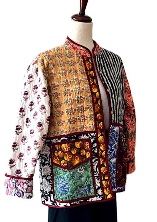 Specialty Collection: Handmade Patchwork Quilted Short Jacket. Fully Reversible (Multi)