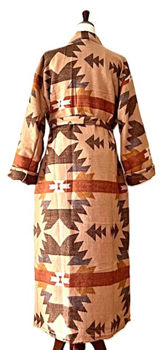 Specialty Collection: Unisex Yak Wool Blend Kimono Robe. Southwestern Ikat Print