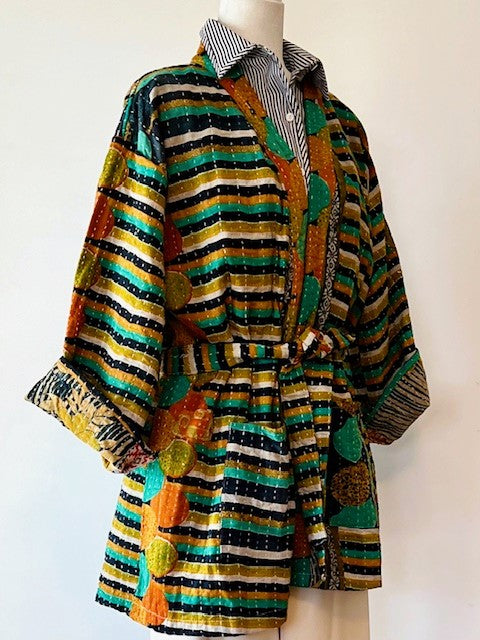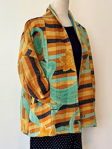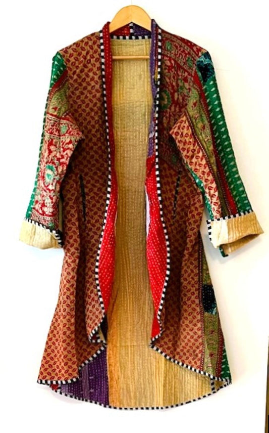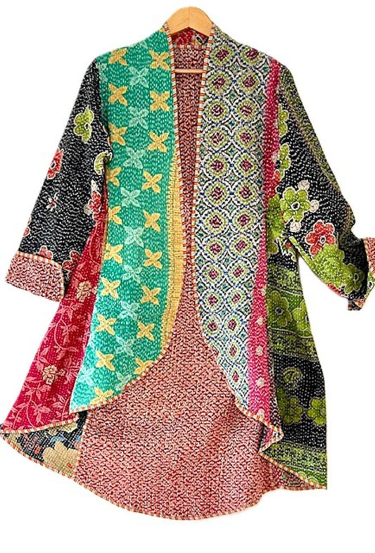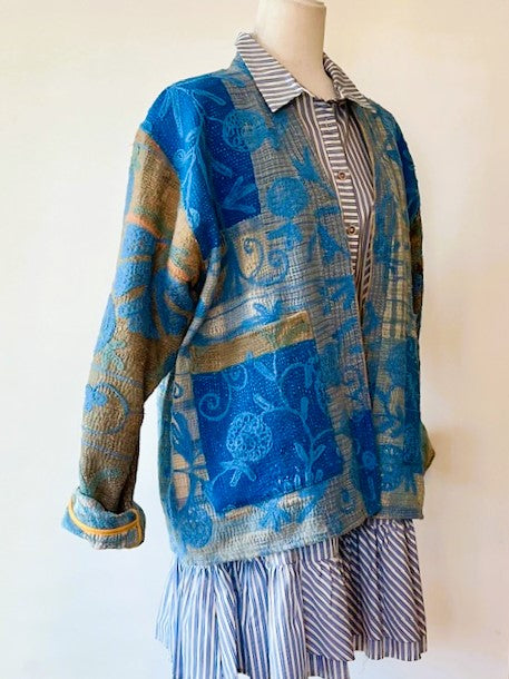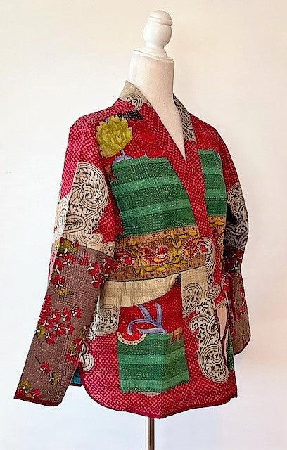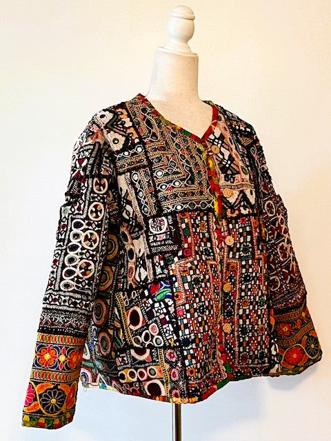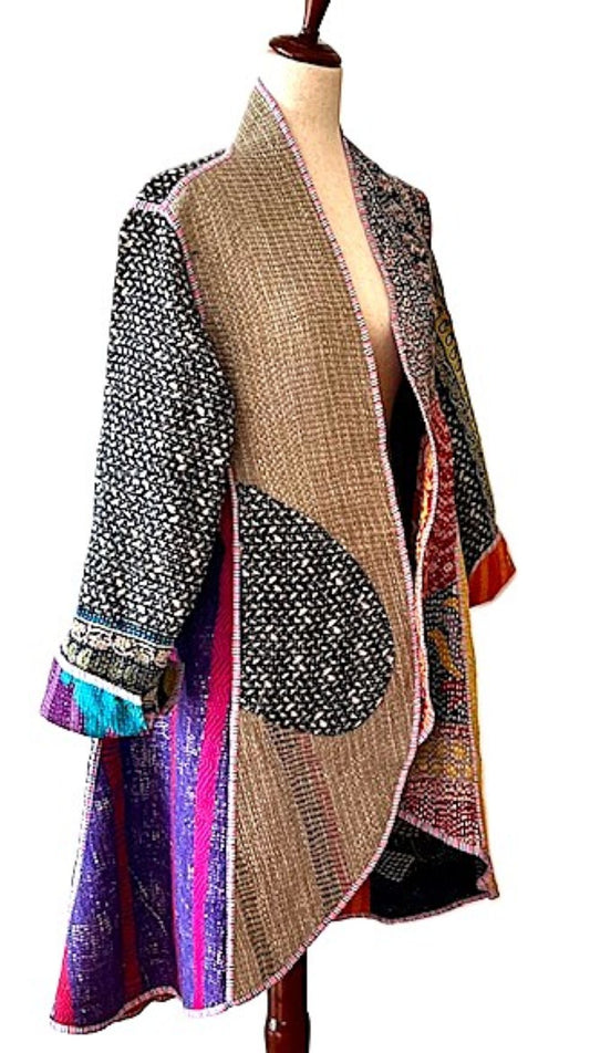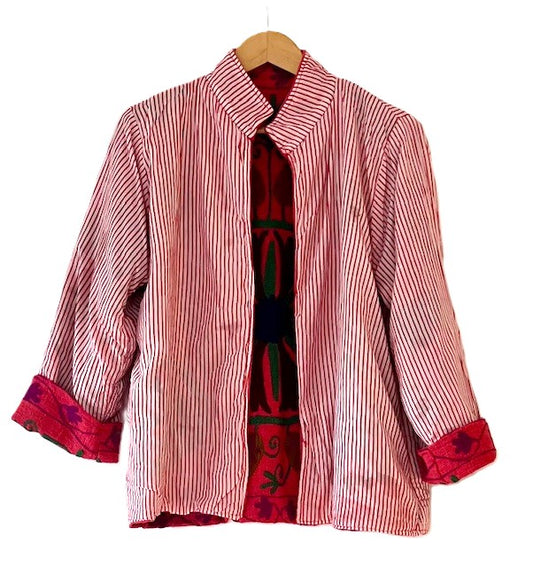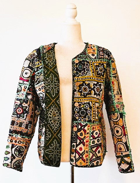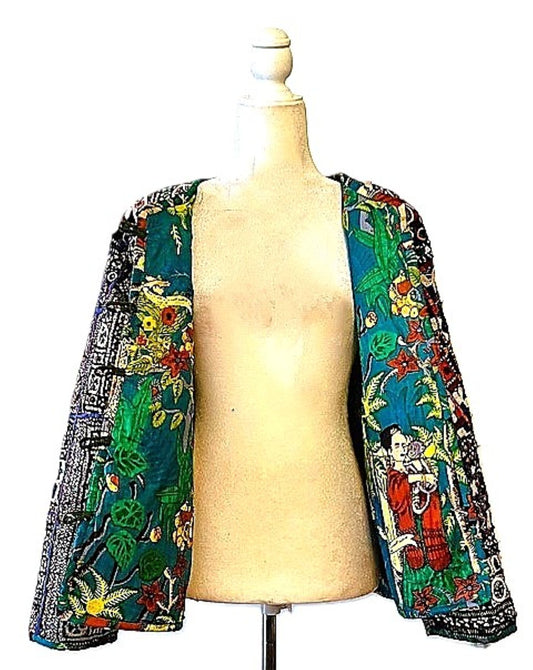 Specialty Collection: Hand Embroidered Short Jacket Fully Reversible. Kantha Quilted.