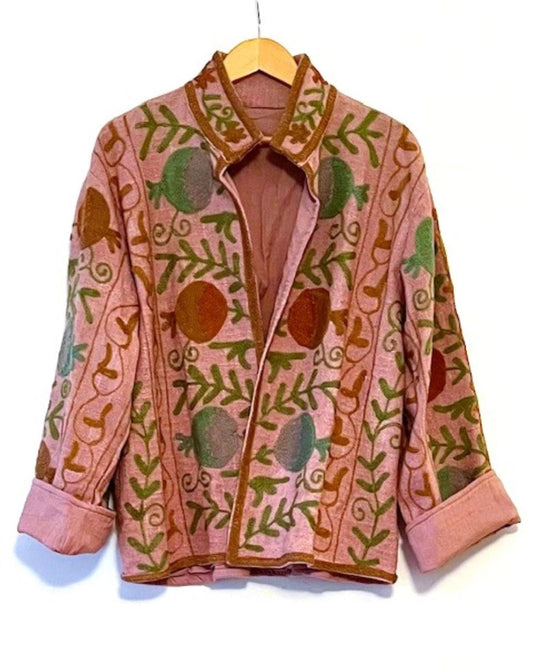 Wearable Art In This Hand Embroidered Short Jacket. (Rose)