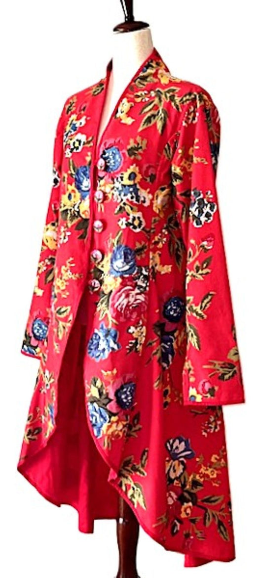 Jackets, Fully Lined Tulip Cut Designer Waist Coat (Red Floral)