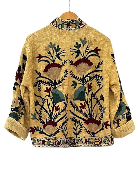 Wearable Art In This Hand Embroidered Short Jacket. (Mustard)