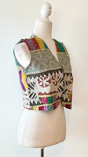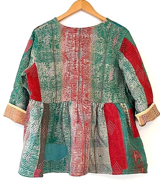 Wearable Art: Handmade Kantha Stitched Multi ColoredJacket. Swing Cut