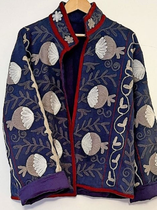 Wearable Art In This Hand Embroidered Short Jacket. (Navy)