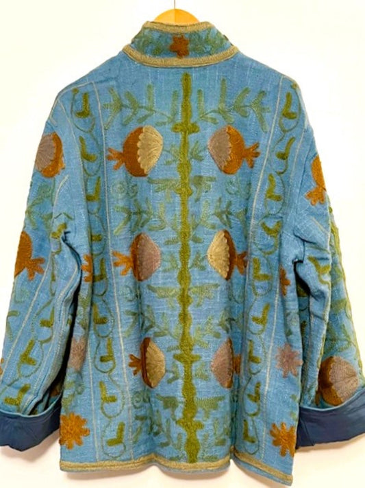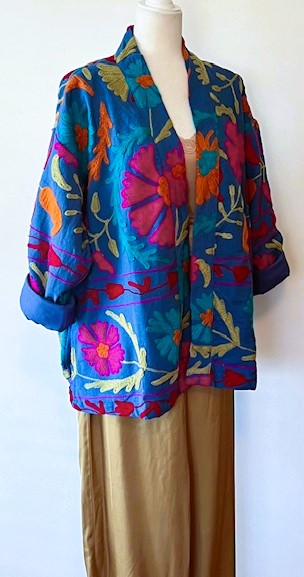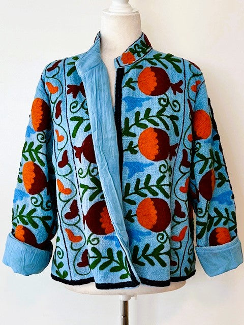 Wearable Art In This Hand Embroidered Short Jacket. (Ocean)