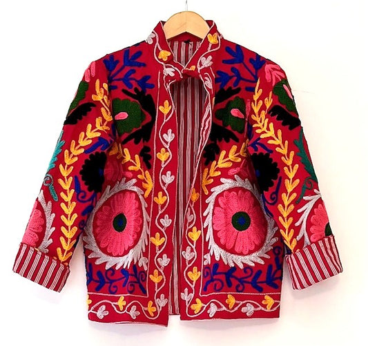 Wearable Art In This Hand Embroidered Short Jacket. (Red)