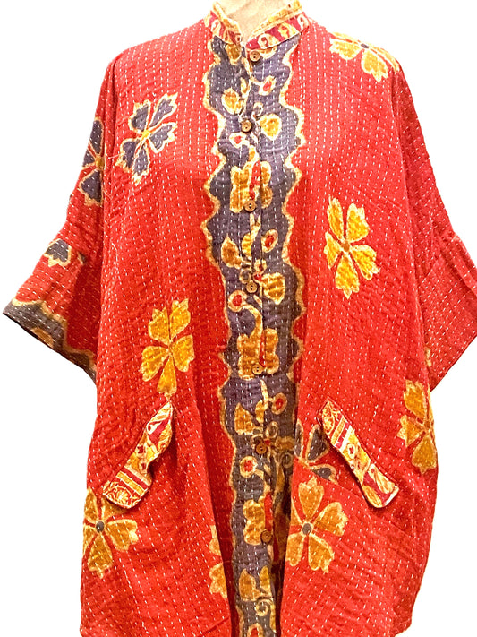 Kantha Bae Oasis Cotton Cardigan, Reversible (Red)