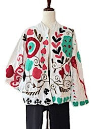 Jacket - Wearable Art, Embroidered, Cotton Velvet Boho Kimono Box Cut. Available In 2 Colors.