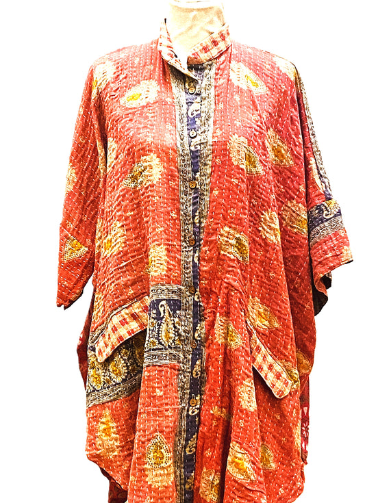 Specialty Collection: Patchwork Vintage Handmade Jacket Fully Reversible. (Red Beige)