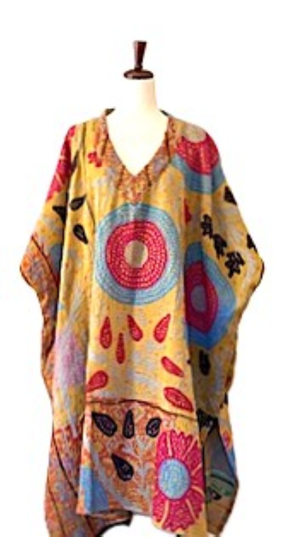 The Suzani Muu is a beautiful blend of artistry and boho dreams. Crafted from hand embroidered fine kantha, this piece features a v neckline, interior pockets and side slits for extra dimension. A walking piece of art excuding with vibrant colors and intricate patterns. Each print is one of a kind and a true designer piece. One size fits most.