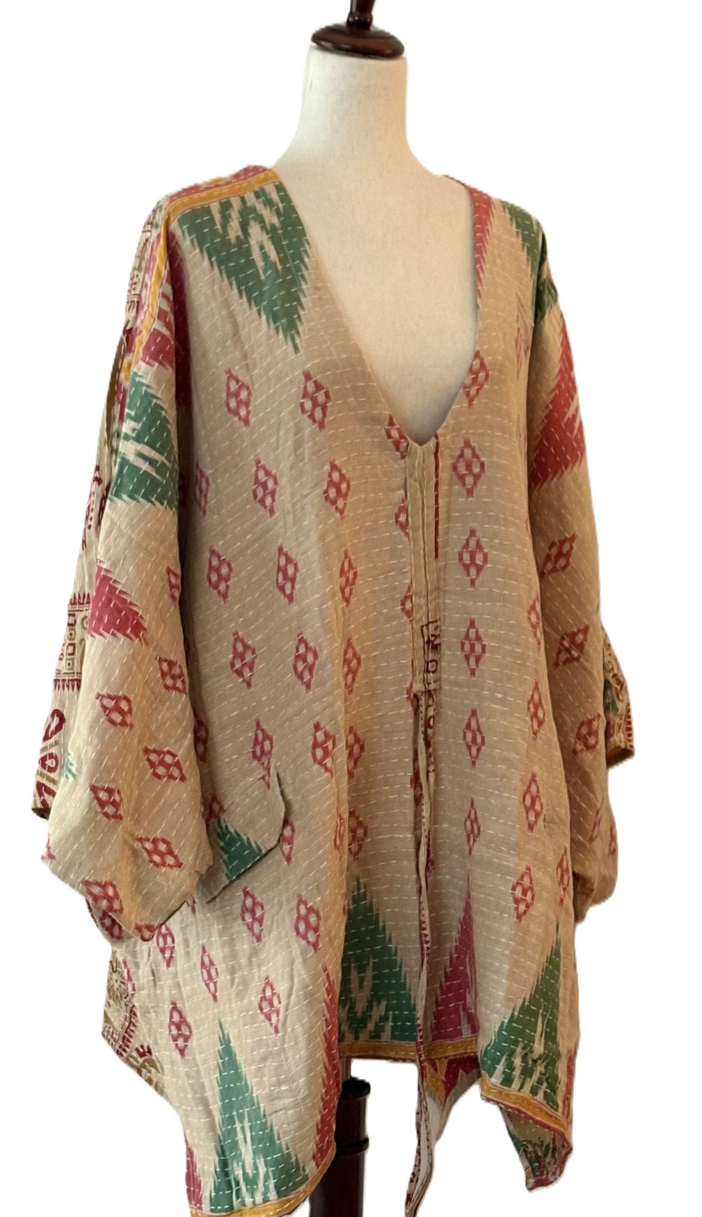 Feel like a goddess in vintage crepe sari Shortie Moondance Muu.A dress that is as comfortable as a nightgown, sophisticated and fashionable, worn for lounging, vacations, resort, even cocktails.