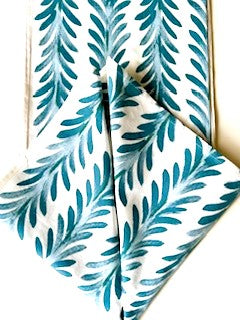 Luxe Dinner Napkins, Block Printed In Turquoise Blue Fern Print