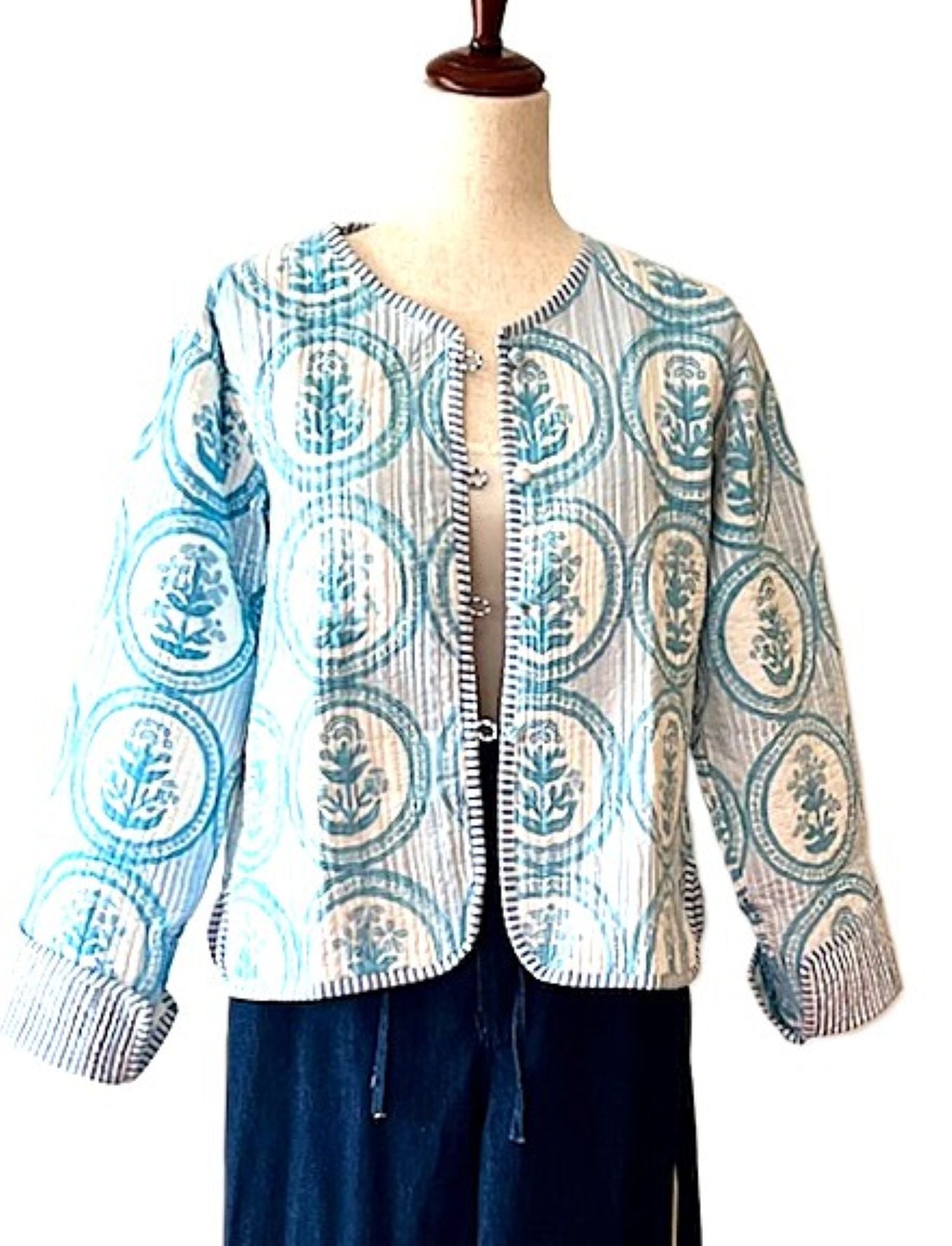 Short Cotton Quilted Handmade Jacket, Fully Reversible is Fresh and New (Light Blue)