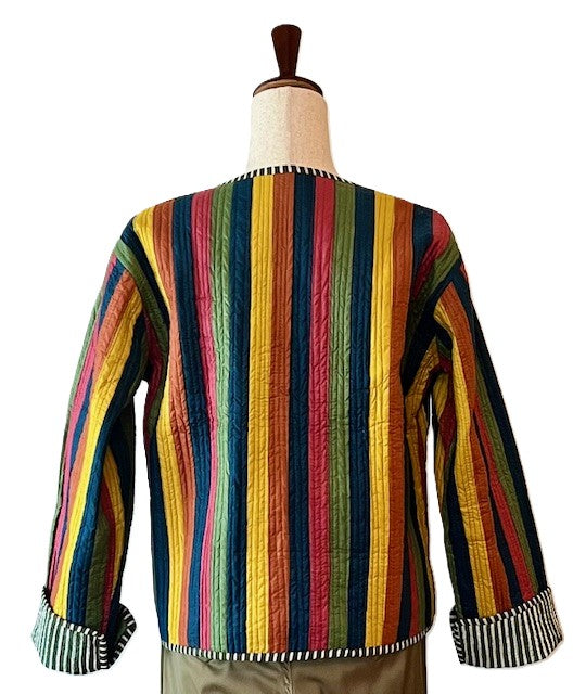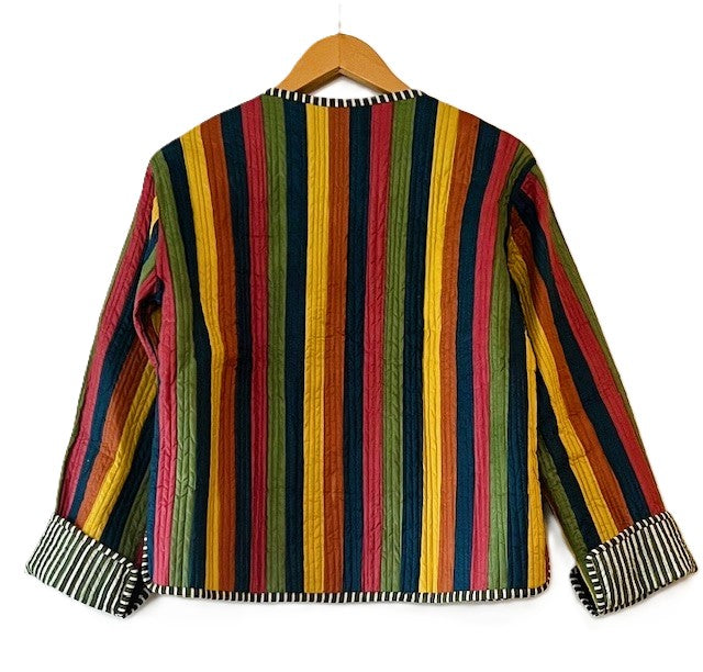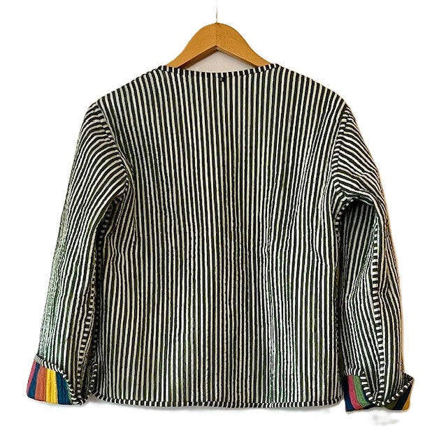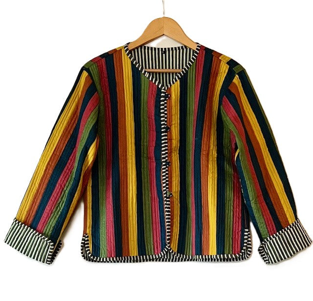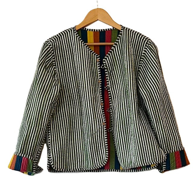 Short Cotton Quilted Handmade Jacket, Fully Reversible. (NEW Dark Striped)