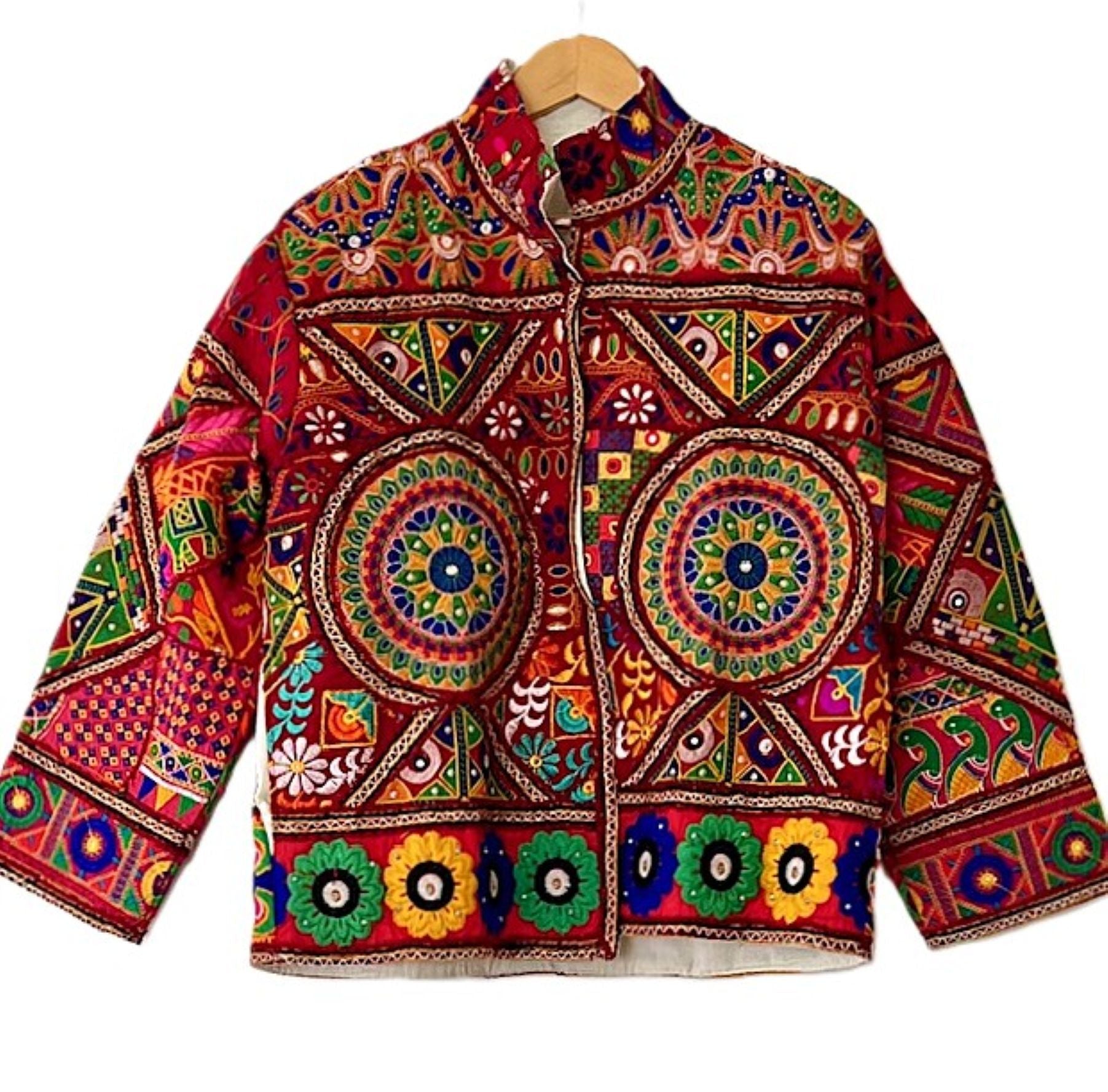 We love the versatility of this jacket. Usually, embroidered garment are considered dressy or theme pieces. Not this one! It may transverse from casual (great with denim) to cocktails layered over slacks, skirt, or dress. All look fantastic.  This jacket can be worn over anything. It Is perfect for any event and great for travel. The patterns are perfect for the boho look of the season. Consider purchasing for a special gift; anniversary, holiday, etc.