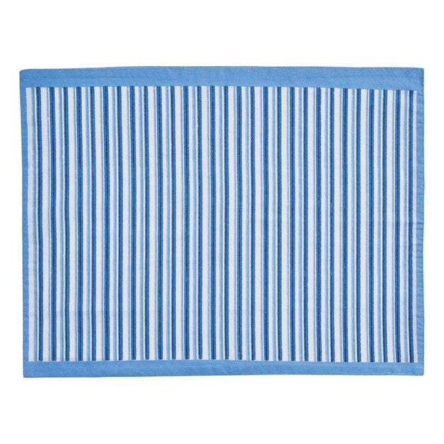Table Linens, Geometric Placemats Fully Reversible in royal blue (Set of 4). Matching Napkins. Beautifully printed cotton placemats & napkins. Nice, clear printing, fresh new geo design on one side, blue and white stripe on the reverse side. Exceptional quality with designer detailing. Simple yet elegant design that adapts well to all seasons. This set has the ability to create an upscale look defined by rich colors and quality printing.